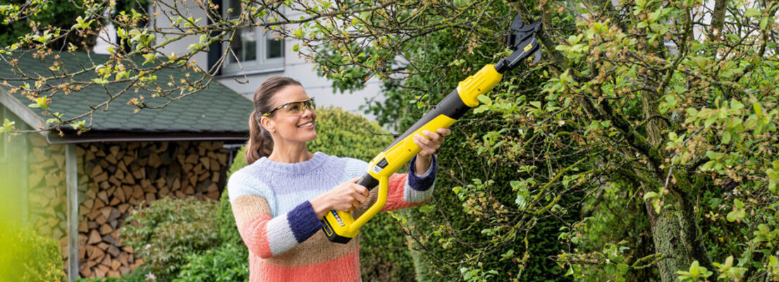- Si optas por una tijera podadora eléctrica, verifica su potencia y la capacidad máxima de corte en términos de diámetro de rama.