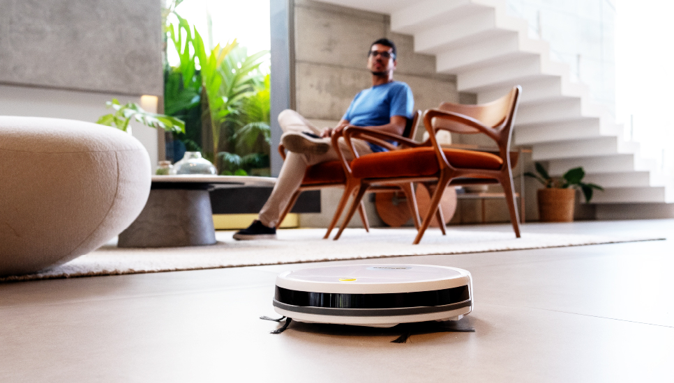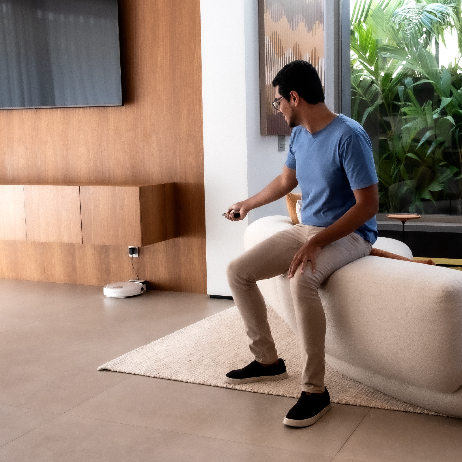 Nuestro robot RCV 1 cuenta con retorno automático a la base de carga cuando la batería está baja.