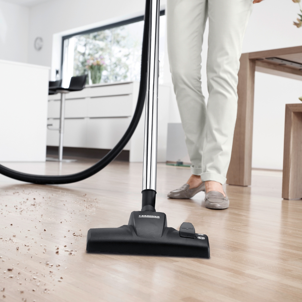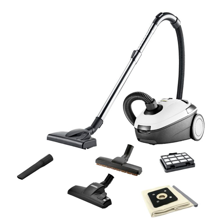 De uso sencillo y perfecta para eliminar grandes volúmenes de suciedad: la aspiradora VC 1 blanca, con bolsas de filtro.