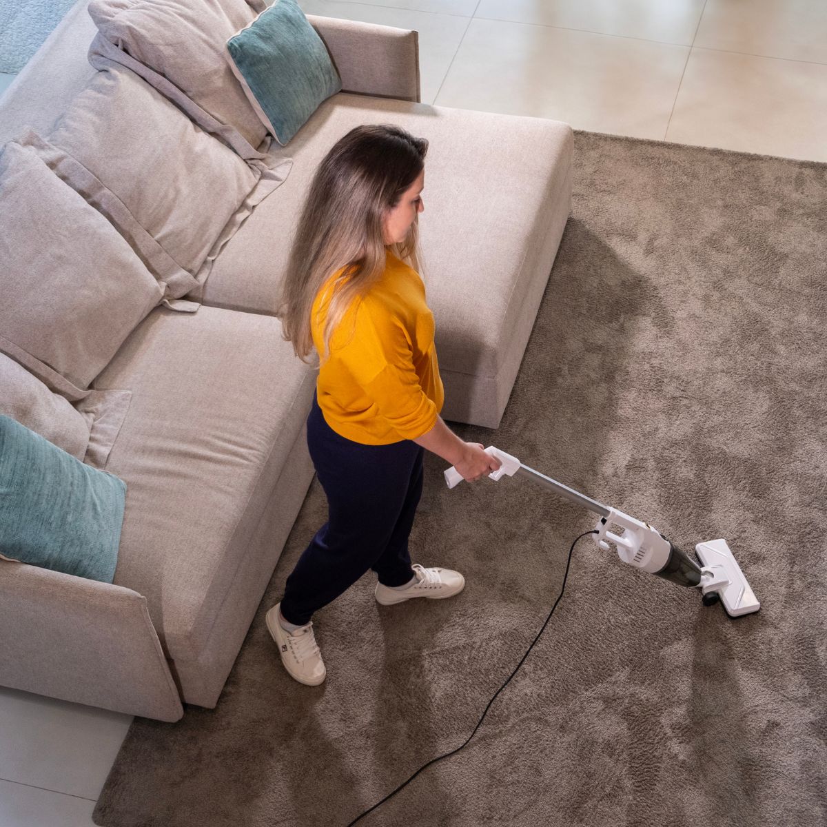 Ligera y ergonómica con un mango largo Cable eléctrico de 5 metros, proporcionando practicidad en la rutina de limpieza. Limpia los pelos de tus amigos peludos en cada rincón y deja todo impecable en segundos.