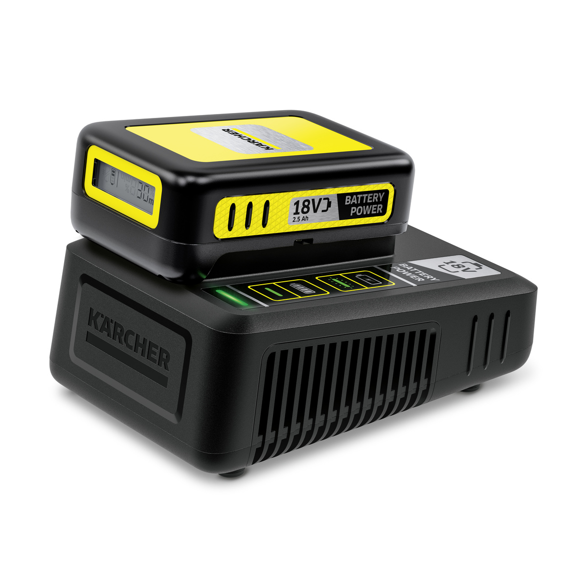 El Cargador rápido batería 18V para equipos de jardinería Karcher carga la batería intercambiable Kärcher Battery Power de 18 V en solo 44 minutos y se puede utilizar para todas las baterías de la plataforma de baterías Kärcher de 18 V.