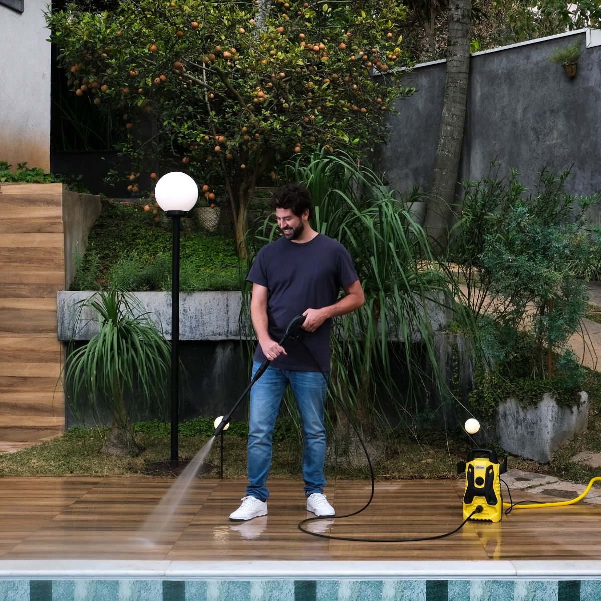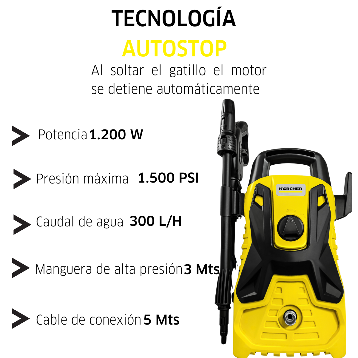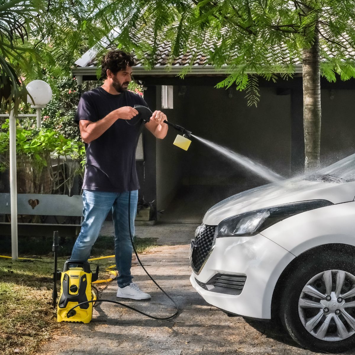 Con una presión de 1500 PSI, la hidrolavadora portátil Kärcher ayuda a eliminar la suciedad más difícil de su automóvil, casa, jardín, garaje y mucho más. Viene con una Lanza de Chorro Recto ajustable que se adapta al tipo de limpieza requerida y un cañón de espuma que simplifica aún más la eliminación de la suciedad. Todo ello ahorra tiempo y agua en comparación con el uso de una manguera de jardín convencional.