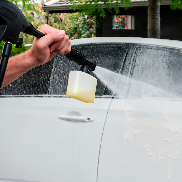 Incluye también la Boquilla de Espuma para limpiar con una espuma potente (p. ej., Ultra Foam Cleaner). Para automóviles, motocicletas, etc., así como para la aplicación de conservantes en superficies de piedra, madera y fachadas.