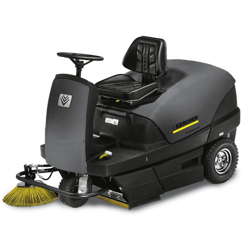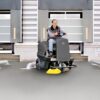 Cómoda y moderna barredora con conductor sentado para el uso profesional en superficies interiores y exteriores de 8000 a 10 400 m2/h.